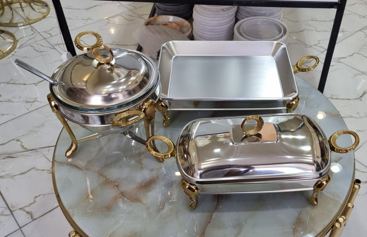 ست سوفله استیل دسته طلایی